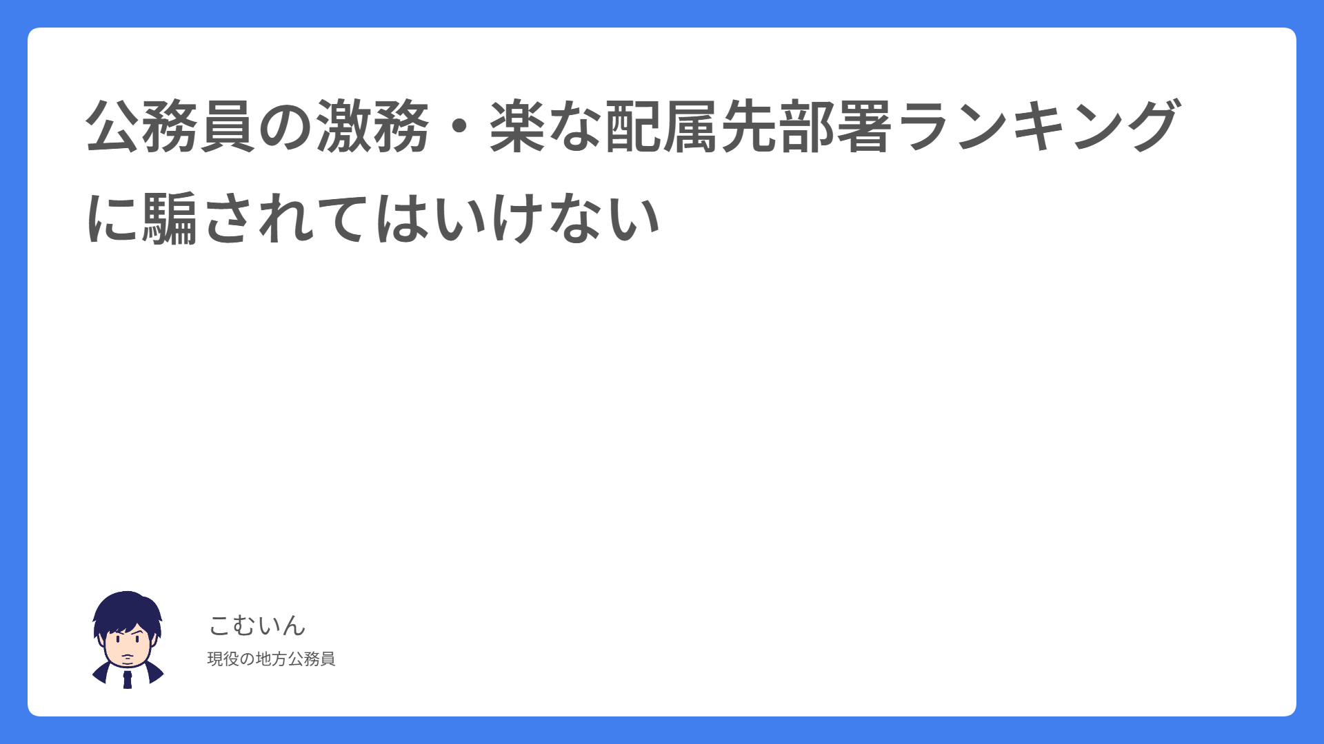 公務員は上司、部下、同僚、前任者のガチャを失敗すると1年が終わる